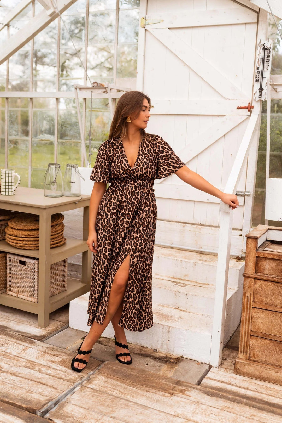 Coralie – Stilvolles Maxi Kleid Mit Leoparden Muster