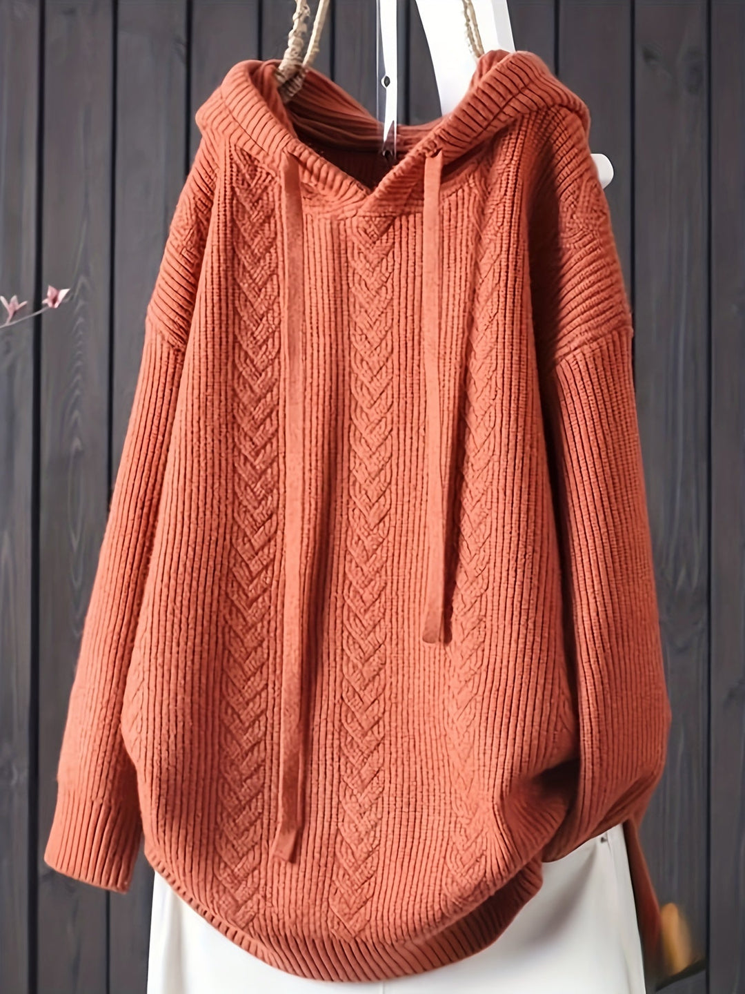 Genivee – Lässiger Langarm Strick Kapuzenpullover