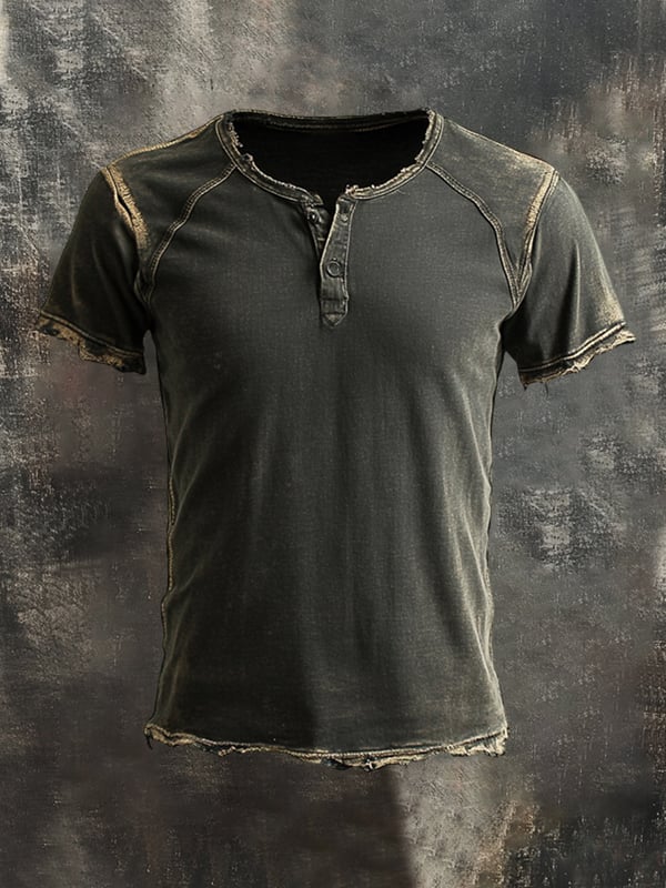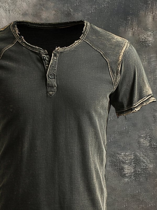 Herren Vintage T-Hemd Im Gebrauchter Look Mit Farbblock Und Henley Ausschnitt Kurzärmelig