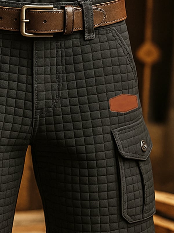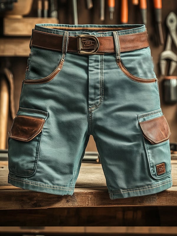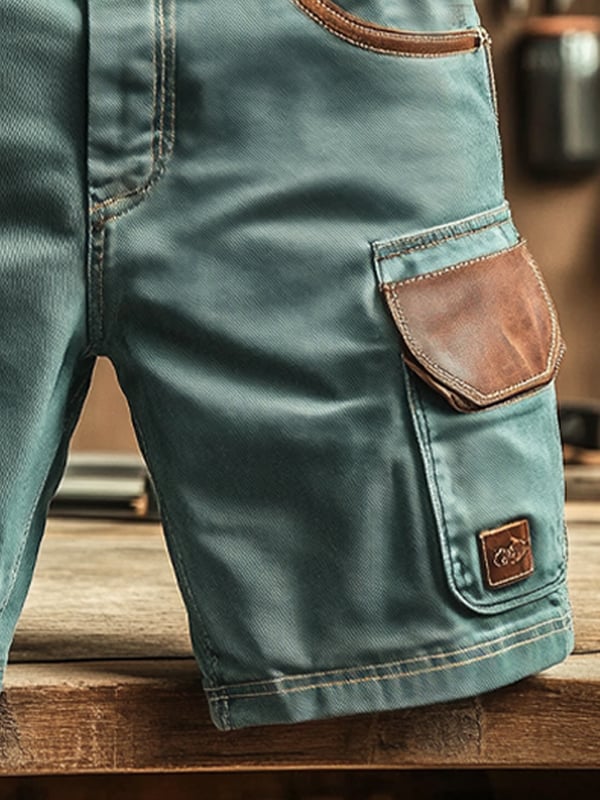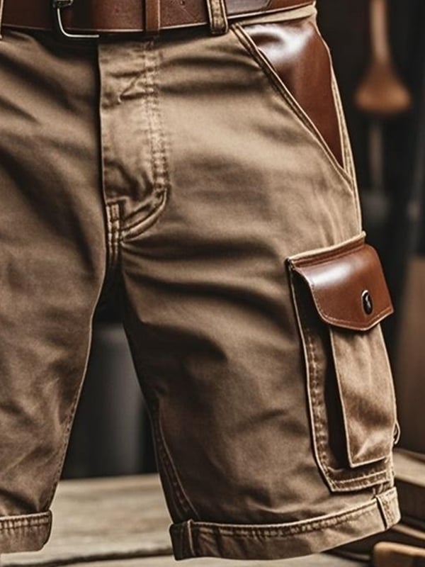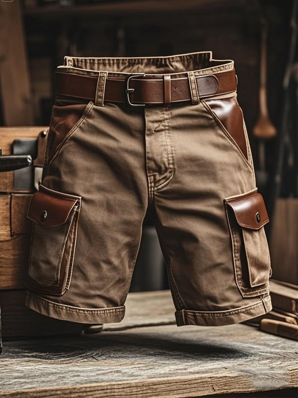 Herren Vintage Outdoor-Taschen aus Wildleder mit Patchwork-Design und funktionalen Arbeitsshorts