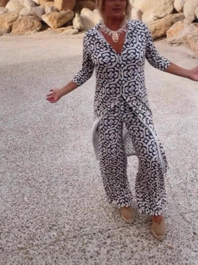 Maliah – Lässiges Set Aus Oberteil Mit V-Ausschnitt Und Hose
