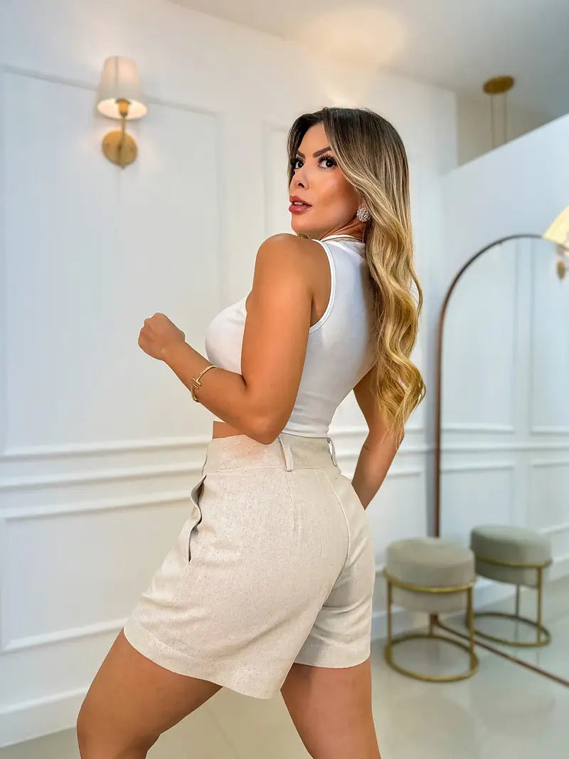Annora – Lässige Kurze Mit Hoher Taille Und Knopf
