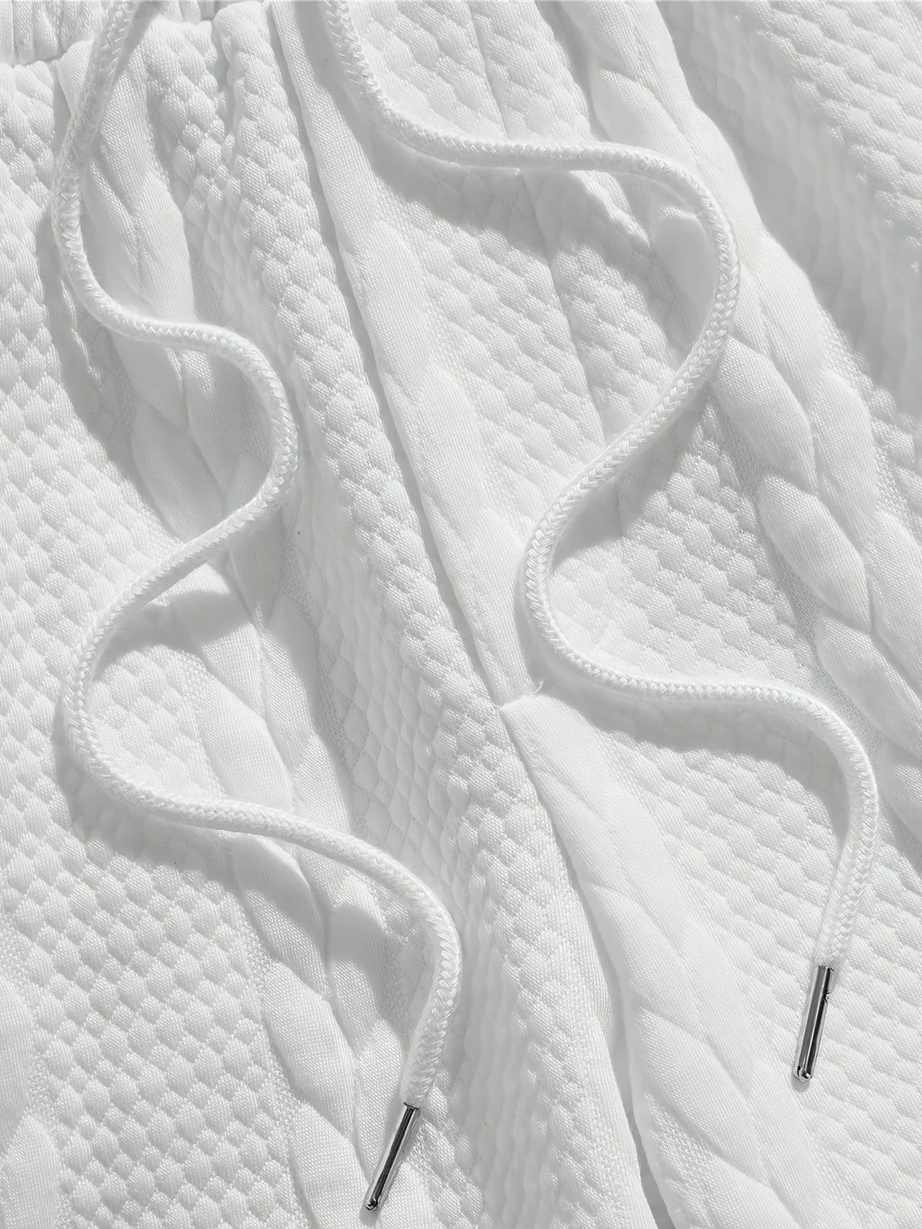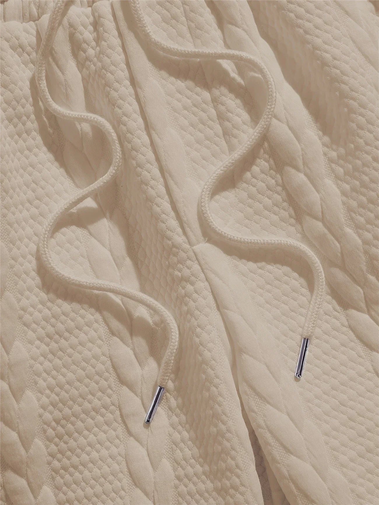 Stylisches strukturiertes Gestaltung: Mit seinem einzigartigen Zopfmuster verleiht dieses Set klassischer Loungewear einen modernen Twist. Die detaillierte Struktur sorgt für Tiefe und einen interessanten Schau, sodass es mehr als nur ein weiteres Basic-Set ist. Die klaren Linien und der minimalistische Stil sorgen dafür, dass du mühelos gut angezogen aussiehst.