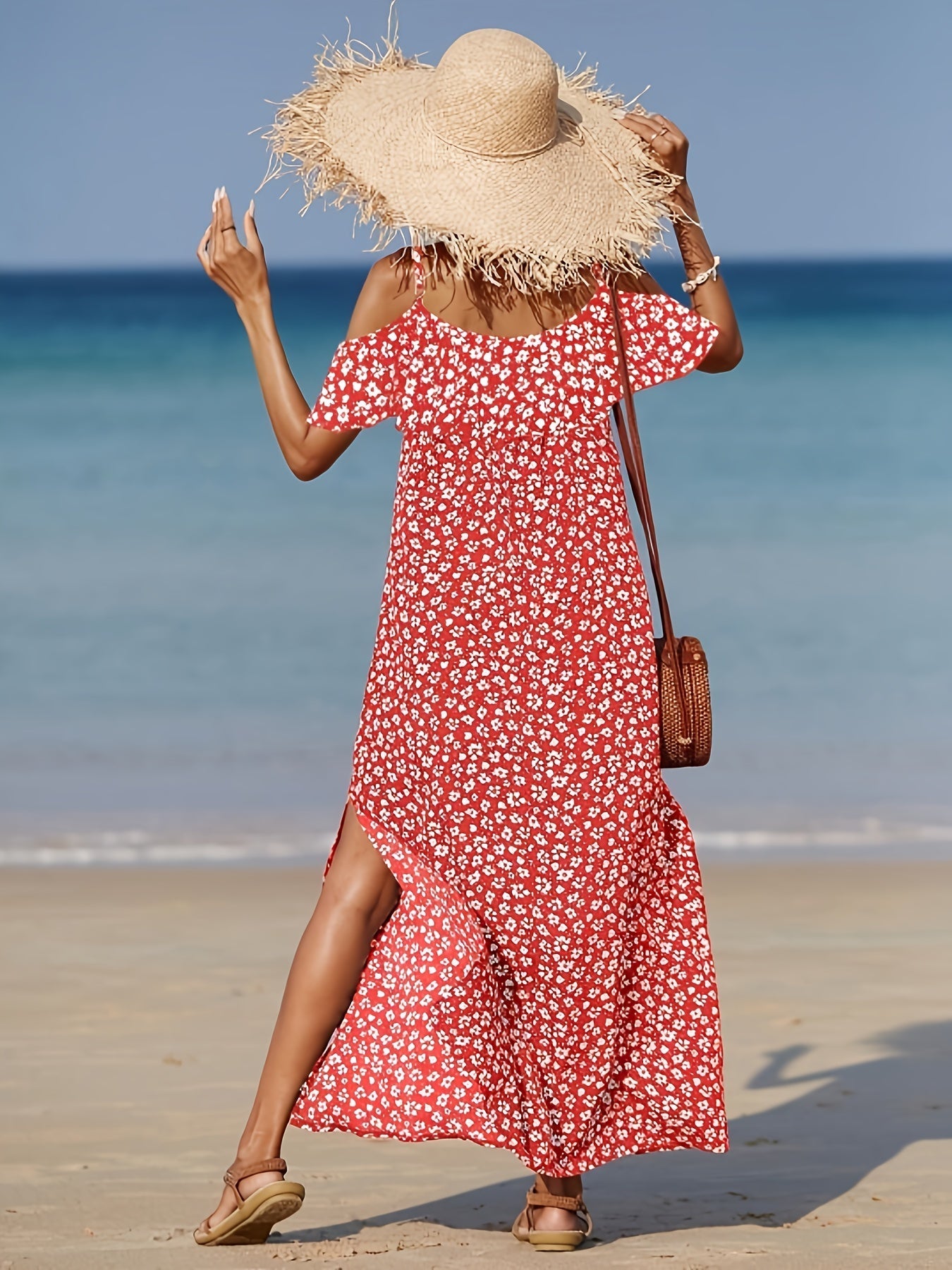Schulterfreier Schau: Der schulterfreie Ausschnitt betont Ihren Hals und Ihre Schultern und verleiht Ihnen einen femininen Berühren. Er verleiht dem Kleid eine luftige Urlaubsatmosphäre und macht es ideal für sonnige Ausflüge oder Abendessen am Meer. Kombinieren Sie es mit einem Strohhut oder auffälligen Ohrringen für einen eleganten Sommerlook.