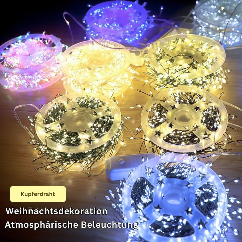 ✅Bezaubernde Atmosphäre überall: TwinkleWire-Lichter schaffen eine magische Atmosphäre, die jeden Raum sofort aufwertet. Ob in Ihrem Garten, um einen Weihnachtsbaum gewickelt oder in Innenräumen für gemütliche Abende verwendet, ihr sanftes Leuchten sorgt für Wärme und Eleganz. Der funkelnde Effekt verwandelt gewöhnliche Bereiche in außergewöhnliche Erlebnisse. Perfekt, um unvergessliche Momente mit Familie und Freunden zu schaffen.