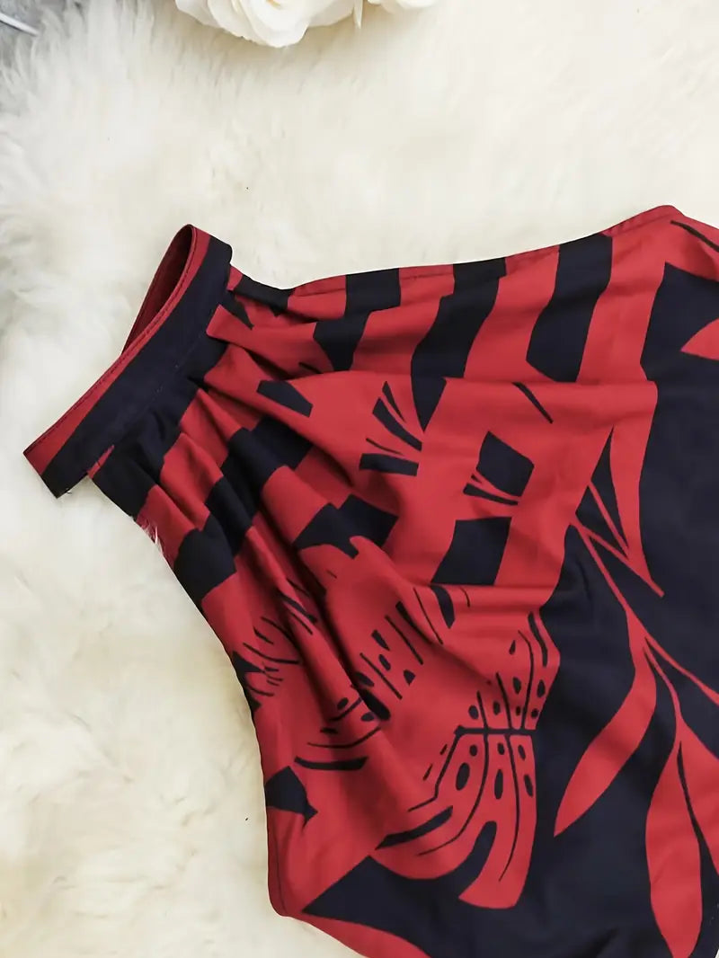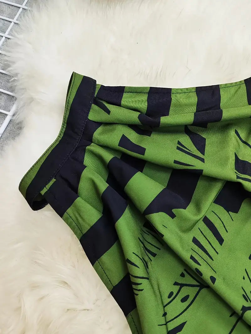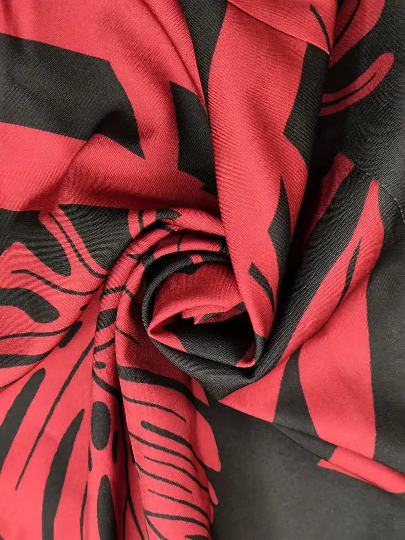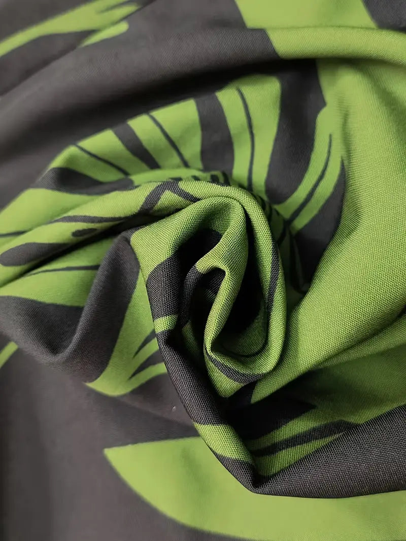 Auffälliges und trendiges Entwurf: Das Zirina – Stylisches Zweiteiler-Set besticht durch einen auffälligen tropischen Blattprint, der ein selbstbewusstes Mode-Statement setzt. Die Kombination aus hochgeschlossenem Crop-Top und weit geschnittener Hose sorgt für eine schmeichelhafte Silhouette. Perfekt für alle, die auffallen und gleichzeitig im Trend liegen möchten.